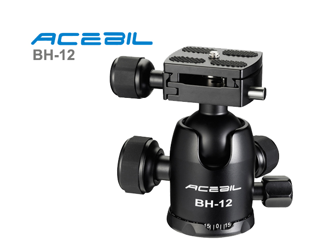 BH-12The BH-12 Professional Photo Ball Head feature a lightweight aluminum ball head a quick-release system. It includes a large locking knob to control the movement of the ball, and a separate knob for the 360° panning movement for complete precision.