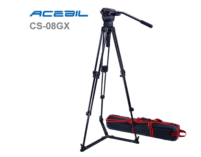 The CS-08GX Professional Tripod System from Acebil includes a 75mm CH0 fluid head, T705GX aluminum tripod, and an S-52 carry case. The tripod features a single-stage design and aluminum construction that supports loads up to 7kg / 15.4lb. It provides a height range from 96cm-156cm / 38"-62" and comes equipped with a sliding quick-release plate and pan bar.
