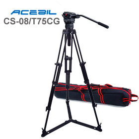 The CS-08/T75CM Professional Tripod System includes a 75mm CH0 fluid head, T75CM carbon fiber tripod, and an S-52 carry case.