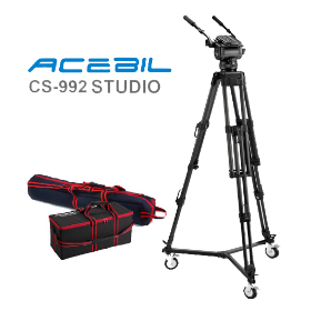 The CS-992 STUDIO Professional Carbon Fiber Tripod System includes a 100mm CH9(F) fluid head, T2002C carbon fiber tripod, D-5 Dolly, Dual Pan Bar and an S-50 carry case.