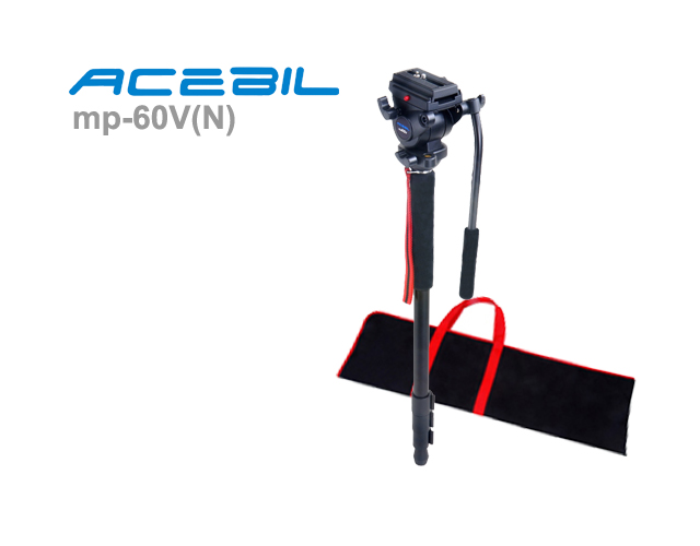 The mp-60v(T) 4-Section Aluminum Monopod with DV Pan Head from Acebil allows you to hold and stabilize video cameras. This version of the mp-60v(T) features an MPS floor stand to the monopod. The DV pan head has a quick release slide plate to allow you to balance your camera by sliding it forward or backward on the head. A pan bar is attached to the head for smooth panning and tilting. The monopod extends up to 180cm / 70.9" and collapses down to 71cm / 27.9". Weighing only 3.9lb while supporting up to 4kg / 8.8lb, its three telescoping aluminum sections extend and retract easily via flip locks, making adjustments quick and simple. A soft padded foam grip adds comfort and protection during cold weather use. The wrist strap will help stabilize the monopod and camera while shooting and also allow you to strap the monopod to your belt or backpack for easy transport. Also included is a soft carrying case for added protection while traveling.