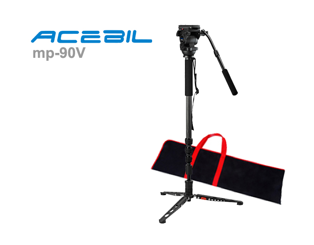 This mp-90V(N) Carbon Fiber Monopod from Acebil combines the mp-C200 monopod with the H805 video head. It can hold up to 5kg / 11.0lb, and extends from 730-1960mm / 28.7-77.2”. The improved floor spreader provides added stability, and its ball joint allows for smooth pan and tilts. Its four sections are secured in place with twist locks, and a foam grip and wrist strap add comfort and security. The H805 video head has a tilt angle of +90° / -60°m, and its included quick-release plate has a 1/4" slide range. A soft carrying case is included to protect the MP-90V(N) when not in use.