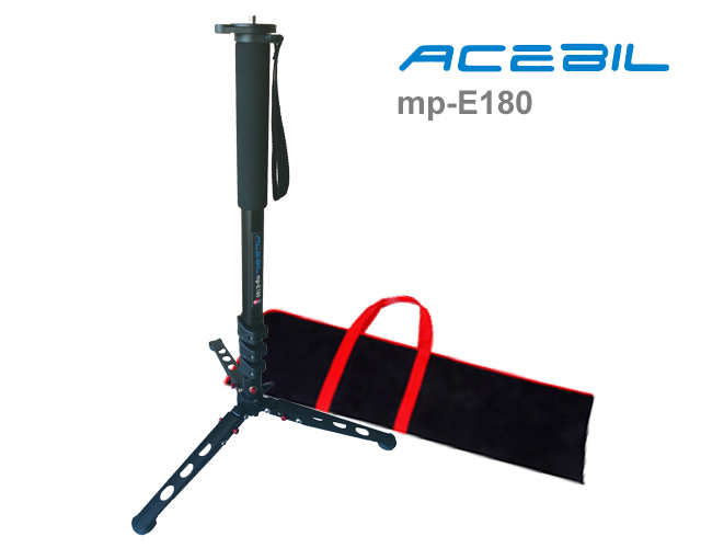 mp-E180 / S-9This mp-E180 Monopod from Acebil can hold up to 20kg / 44lb, and extends from 730-1820mm / 28.7-71.6". The improved floor spreader provides added stability, and its ball joint allows for smooth pan and tilts. Its four sections are secured in place with twist locks, and a foam grip and wrist strap add comfort and security.