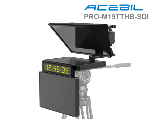 19" Studio Teleprompter / Talent Monitor / PROCLOCKThe Studio Teleprompter is the perfect choice for studios. It is cost effective with ultra clear glass and an ergonomic lightweight design. It is easy to assembly and offers user friendly software. Most important is the “flip mirror” feature which is embedded inside the hardware and provides a reverse view automatically. Supports any camera size Mini DV to ENG/HD and all Studio System Cameras.