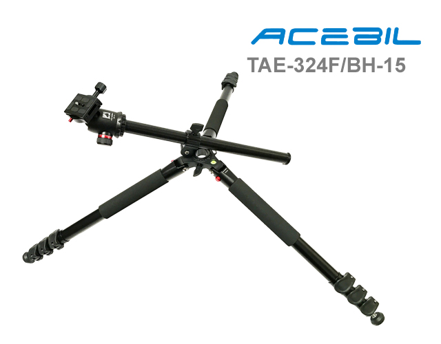 TAE-324F/BH-15The TAE-324F/BH-15 Professional Photo Tripod System features a 180 degree folding design for traveling. Built-in bubble level for precise positioning. Friction Control System allows you to modify the level of friction on the ball to accommodate changing equipment weight. Adjustable leg angles can be independently locked into place at three different angles and a Multi-Angle Central Column. Spring loaded weight hook allows assitional weight mounting stability during windy conditions. Alloy body minimizes weight. Dual threaded head platform assures compatibility with almost any tripod head and camera. Alloy body with aluminum leg pipe & adjustable foot spike. Features large foam grips on all three legs for all-weather use.
