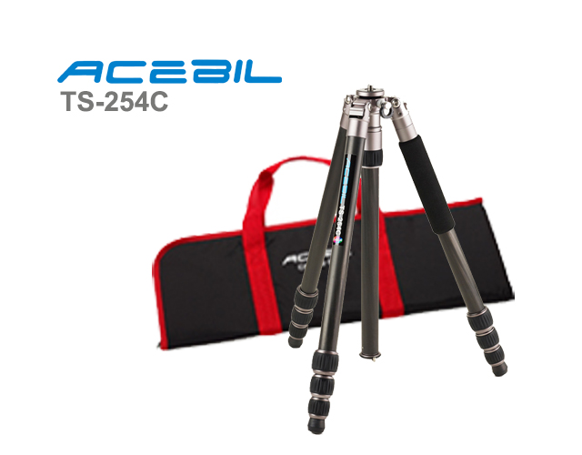 TS-254C / S-2The TS-254C Professional Photo Tripod System features a built-in bubble level for precise positioning. A reversible center column and multi position legs allow for low angle shooting. Adjustable leg angles can be independently locked into place at three different angles. Spring loaded weight hook allows assitional weight mounting stability during windy conditions. Alloy body minimizes weight. Dual threaded head platform assures compatibility with almost any tripod head and camera. Silver color alloy body with black color carbon filber leg pipe. The leg with logo printed can be removable and use as the monopod. Includes an S-2 carry case.